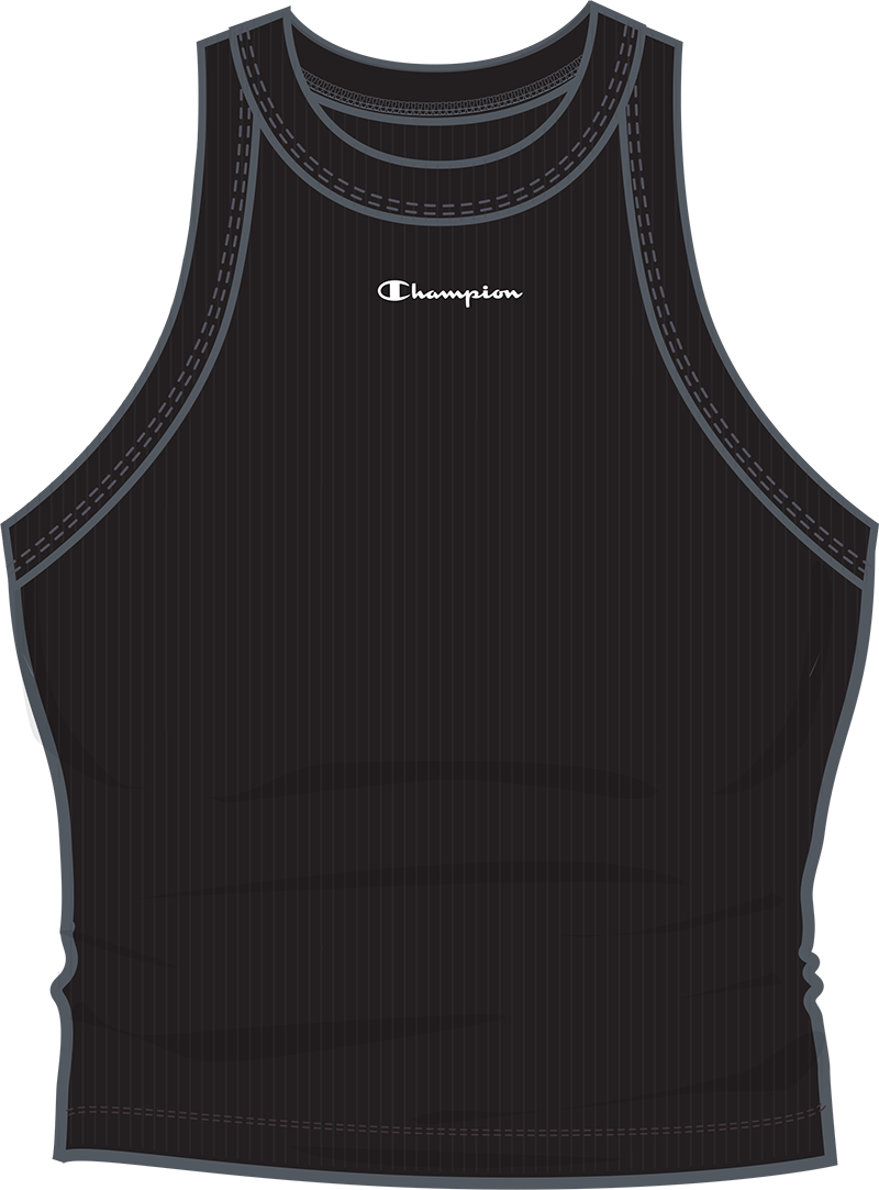 Ce débardeur pour femmes de Champion est fait de tissu côtelé doux et extensible avec une encolure haute et un ourlet court. Le logo emblématique de la marque orne la partie supérieure centrale de la poitrine