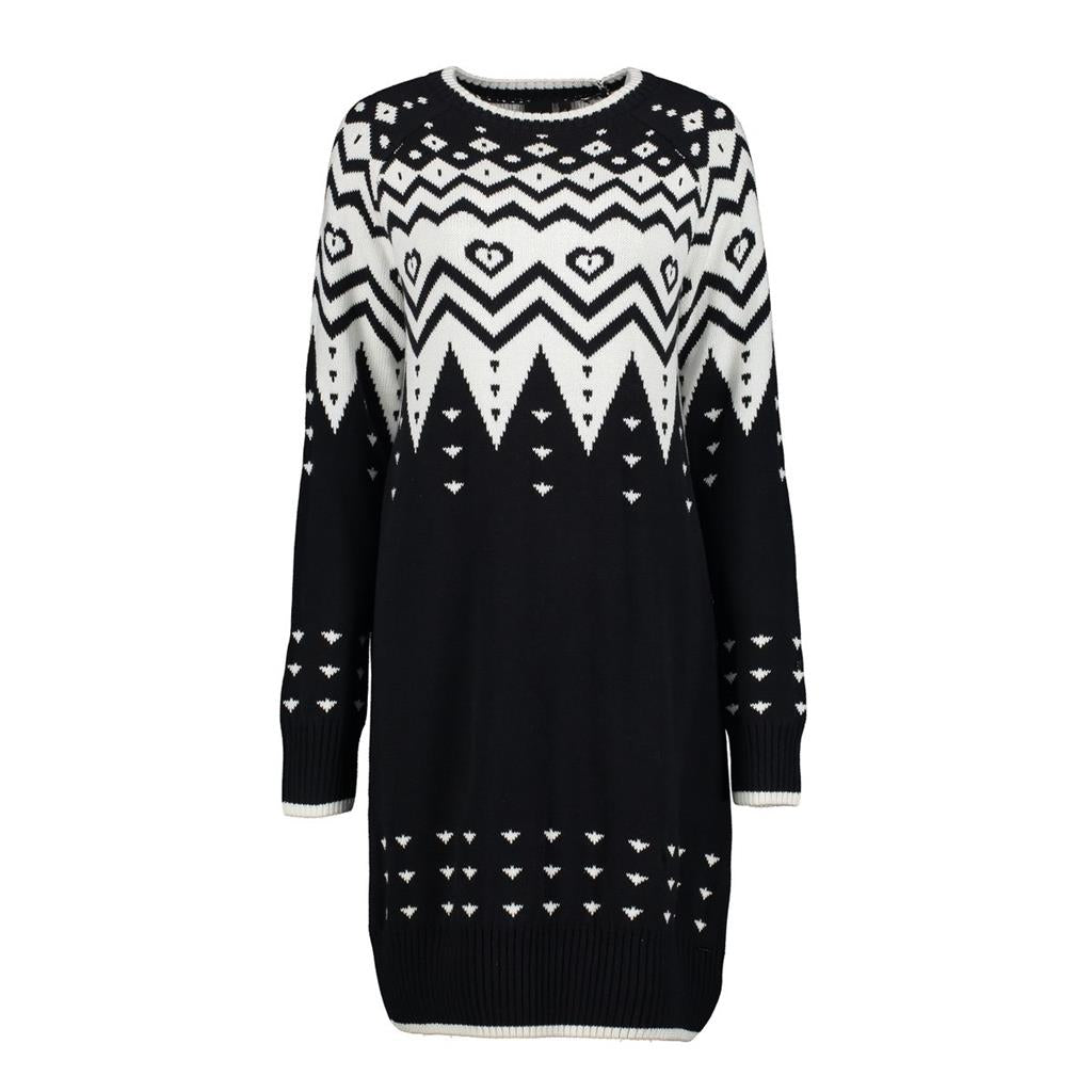 Une robe en maille 100% coton avec un motif qui rappelle les pulls scandinaves traditionnels. La robe est assez élégante pour un usage urbain mais fonctionne également à l'extérieur.