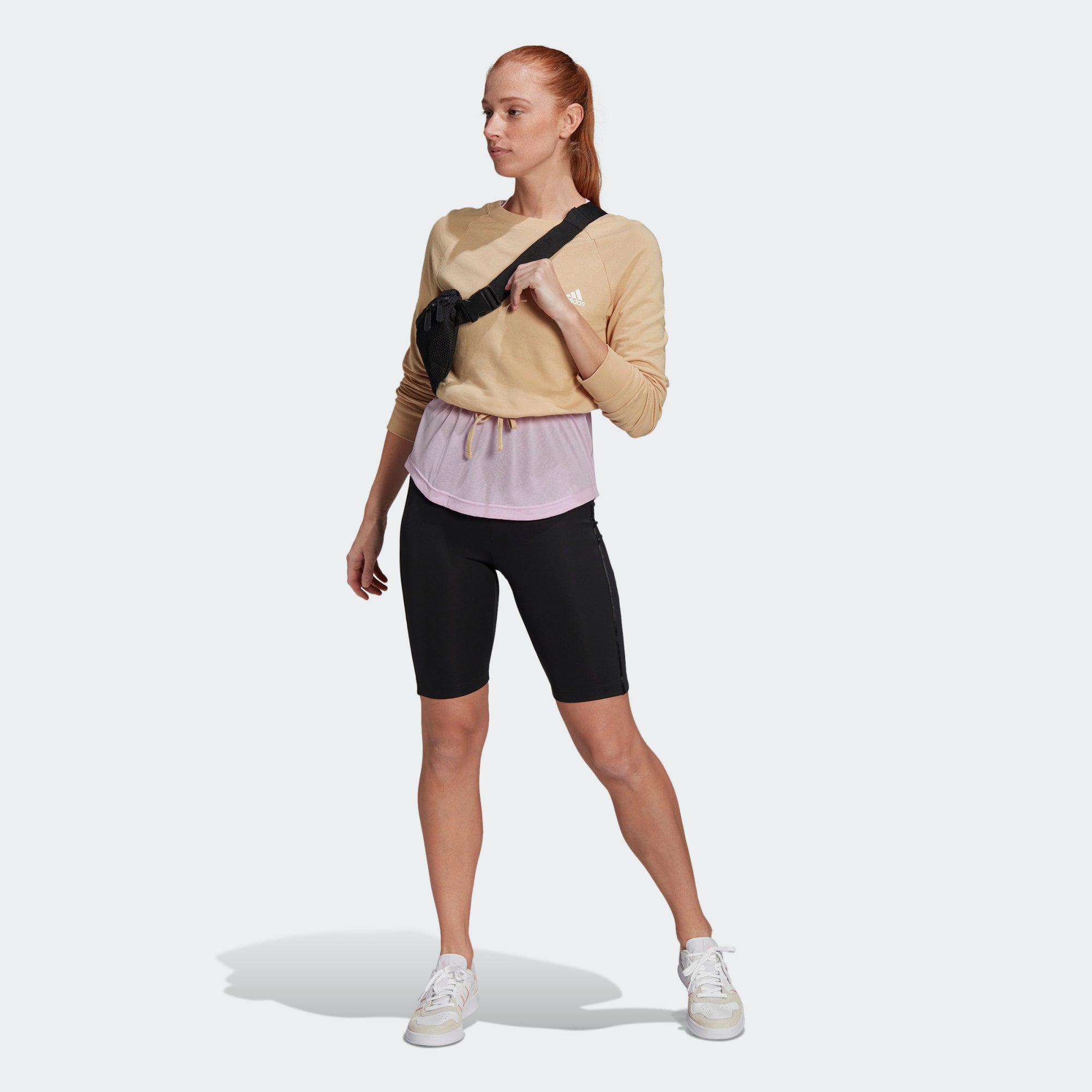 Style and well-being. This adidas wader allows you to move, dance, train and sweat as you want. Its high size is perfectly associated with a crop top for a chic training look. Aeroready technology absorbs perspiration to keep you dry with each session. This product is designed with Primegreen, a series of high performance recycled materials.
