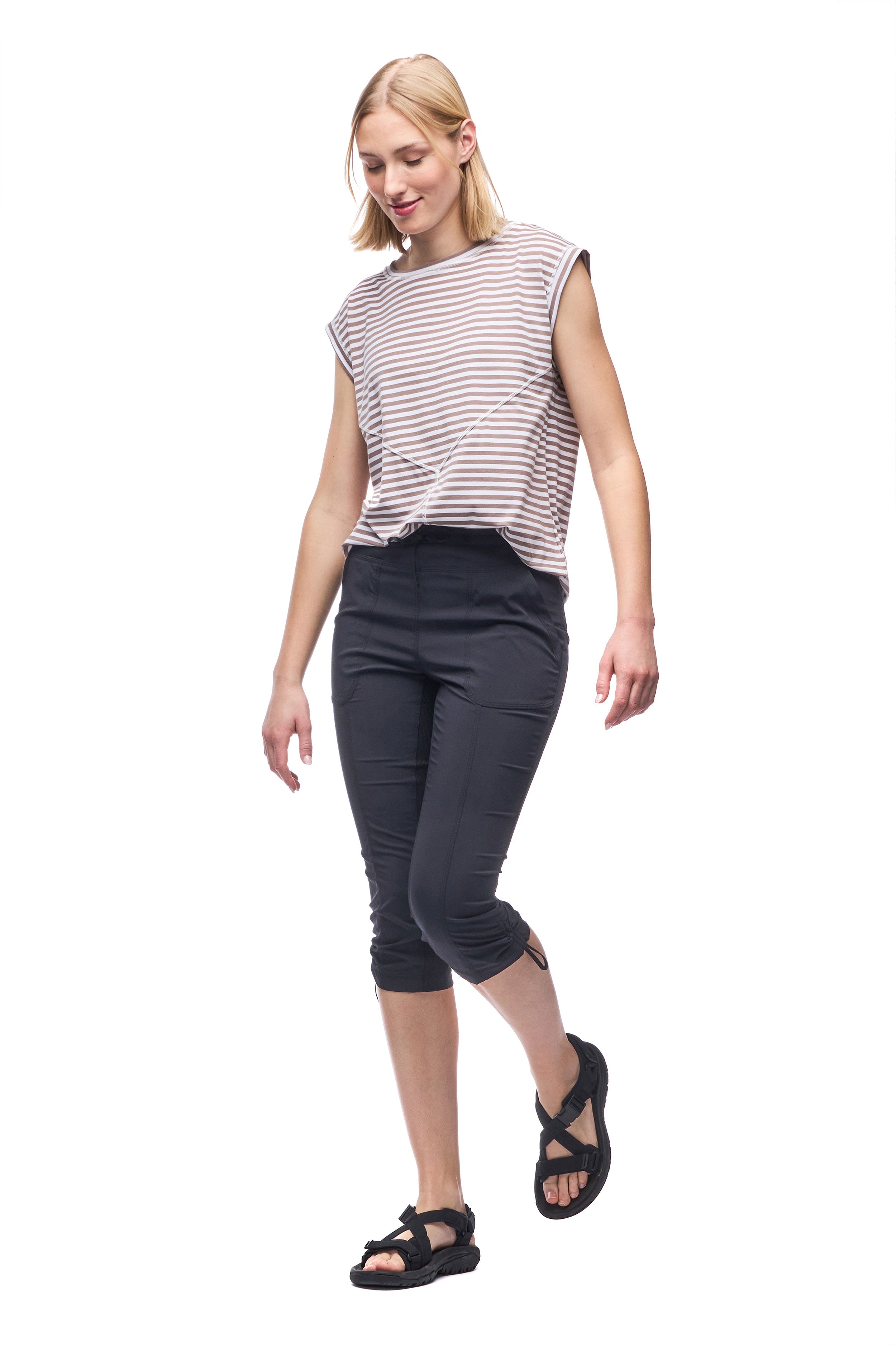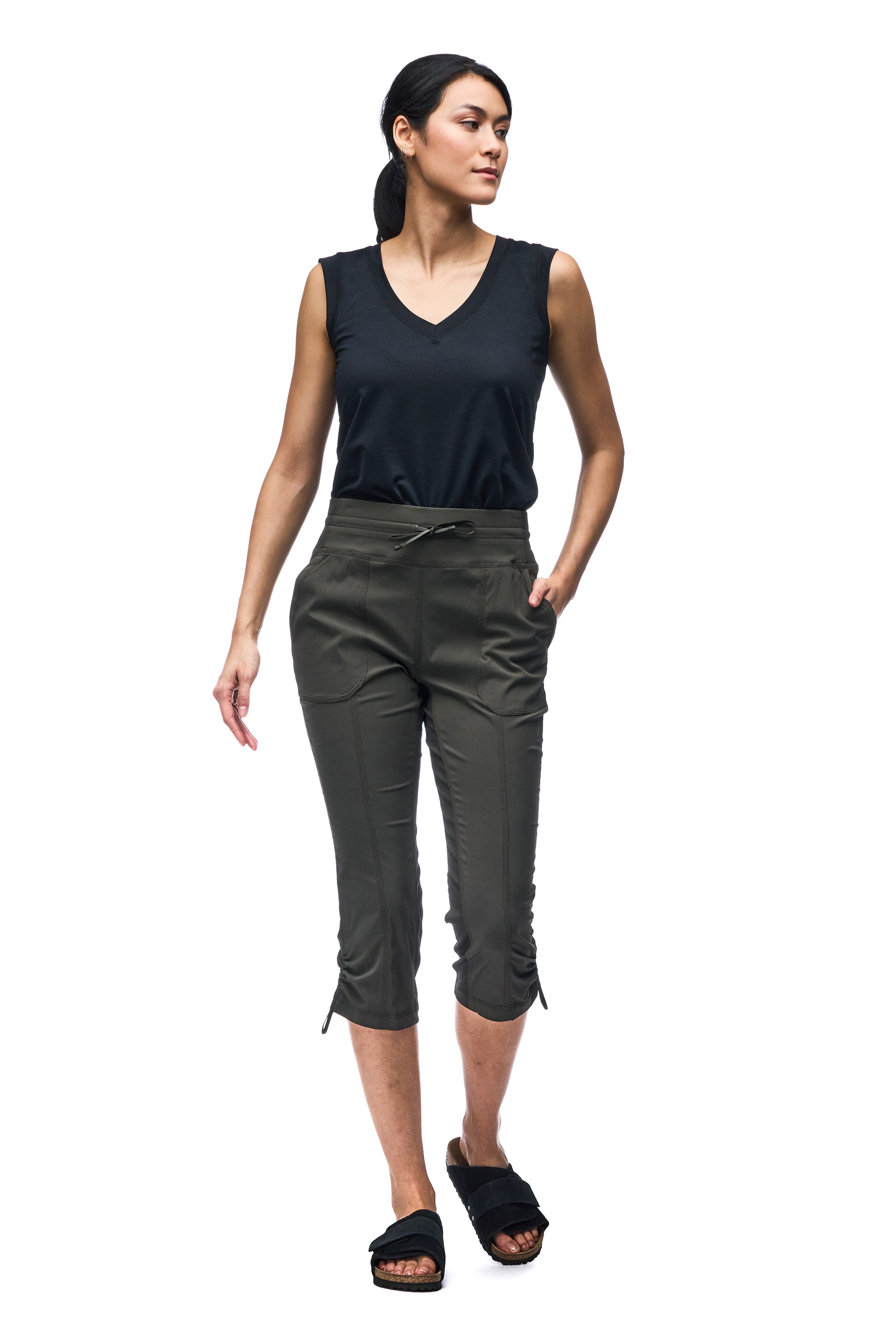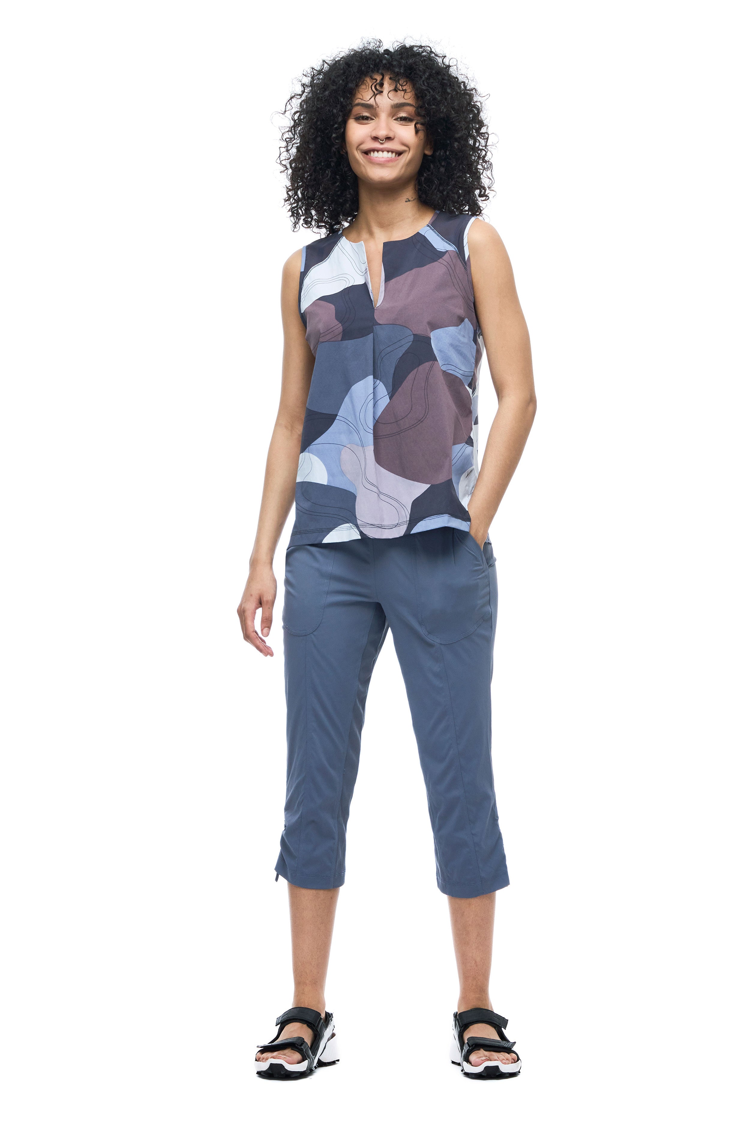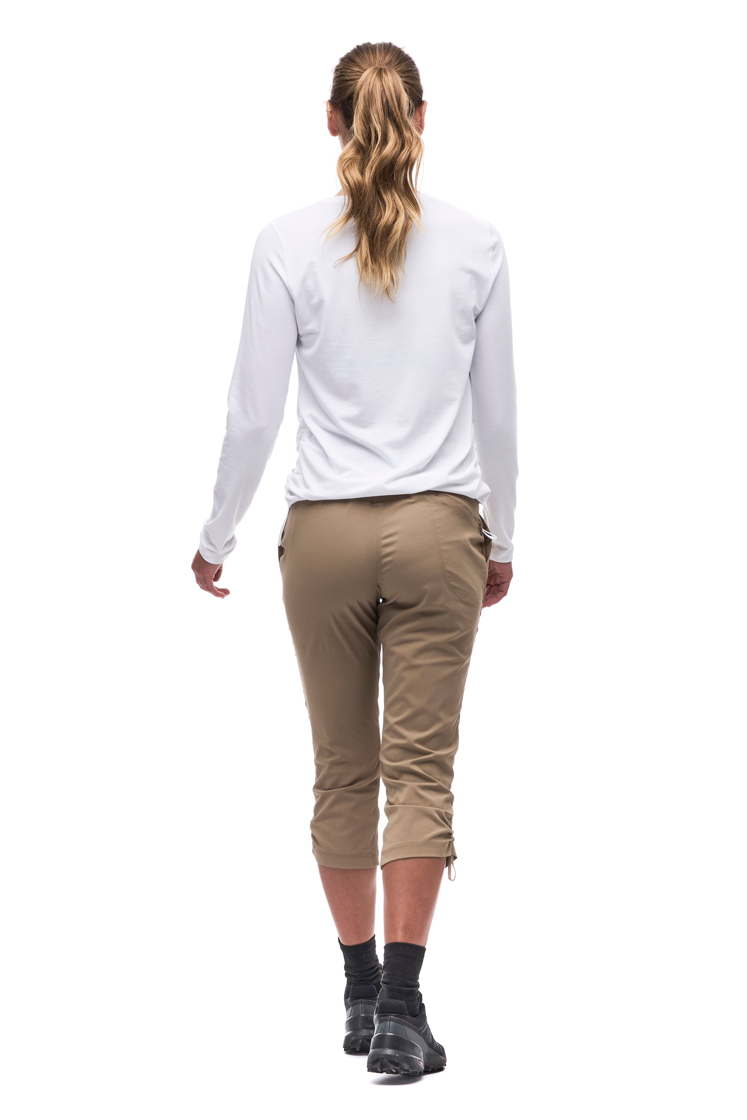 High -waist Capri made in a light, resistant and extensible fabric in both directions which offers freedom of movement, quickly dries and evacuates humidity. The Nakato IV pants have an elastic size with an adjustment cord, two front pockets and and a secure zipped pocket on the back. These characteristics make this pants versatile, ideal for hiking, travel and various outdoor activities. Made from an Oeko-Tex certified nylon fabric.