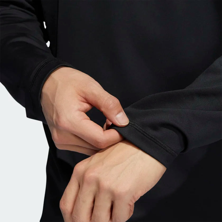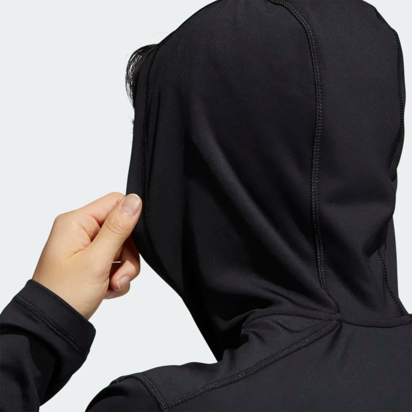 Nothing like a morning part to start your day off right. Very light, this Adidas golf hooded sweatshirt is perfect when it is cool on the route. It is designed in stretch matters for total freedom of movement. Its quarter zip allows it to be easily removed when the temperature rises on the fairways.
