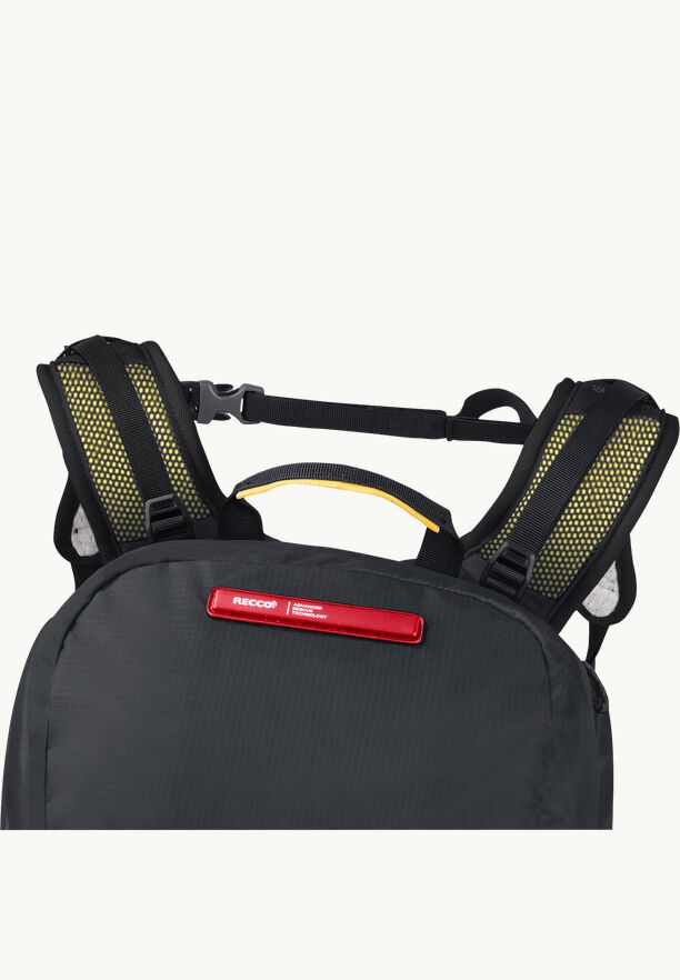 This spacious Wolftrail 28 RECCO backpack is made up of reused materials and with a RECCO location chip.