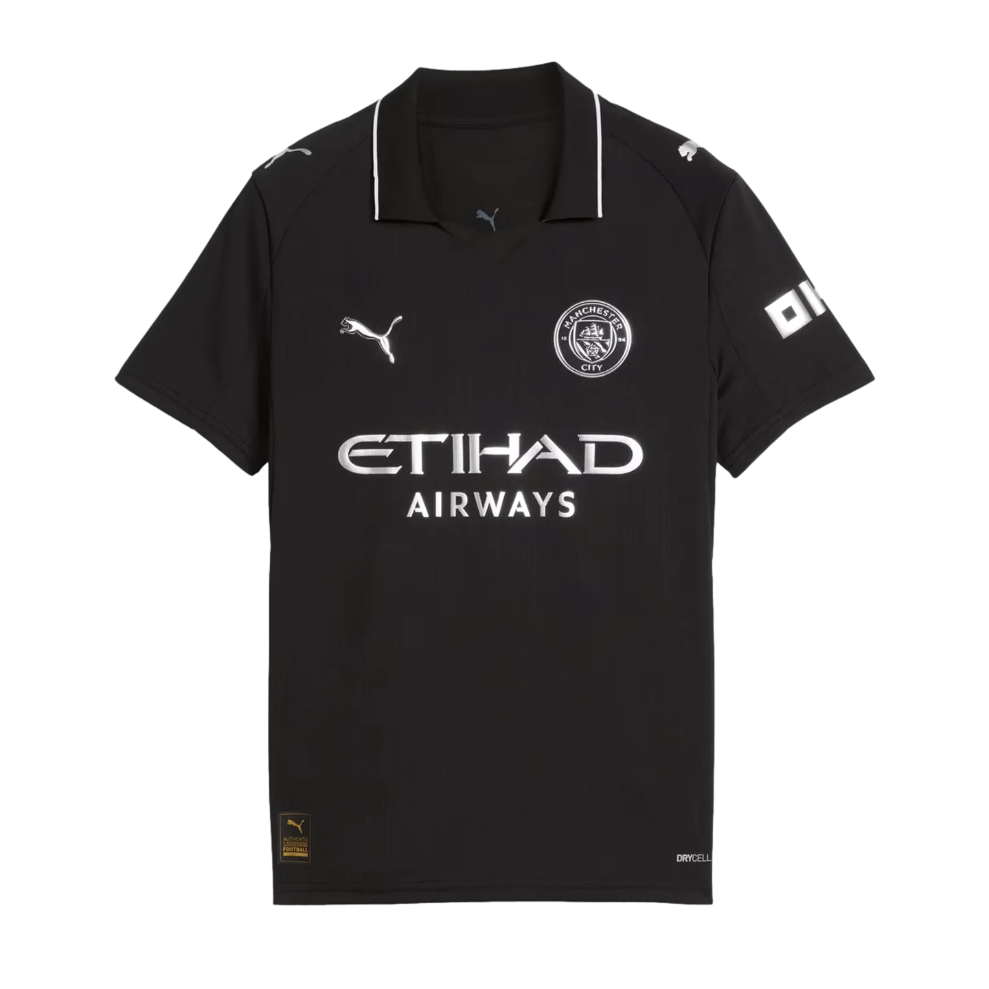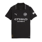 The oldest known jersey in Manchester City's history dates back to 1884, when the club was based in Gorton. The 25/26 away jersey pays homage to City's first supporters, reinvented with a nod to the club's innovative spirit. Completely black, it is inspired by this historic jersey and is embellished with metallic details to celebrate the timeless essence of Manchester City Football Club.