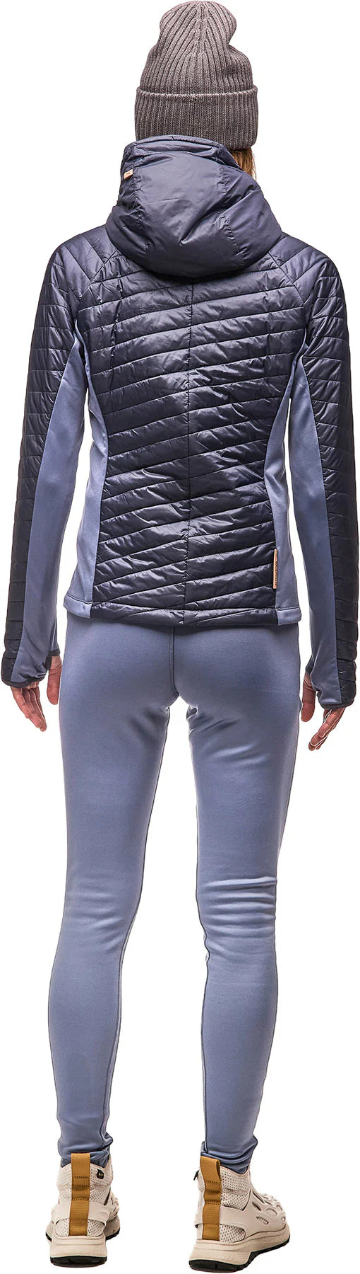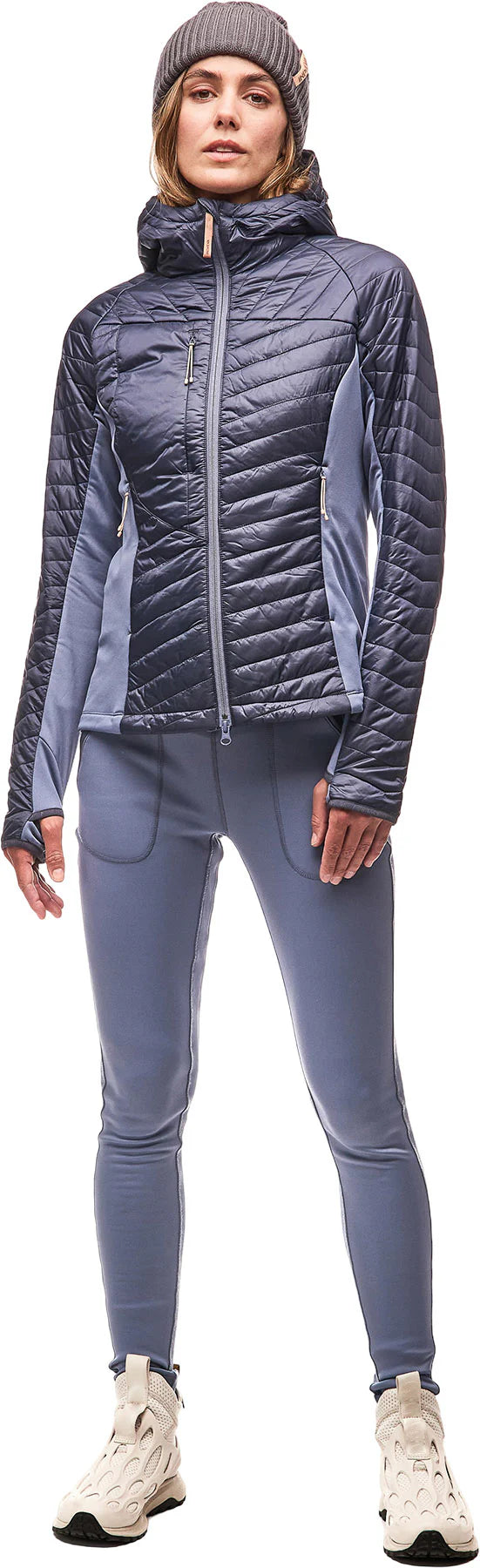 Long sleeve jacket with hooded quilted with off-cutting zipper and flared adjustment with hips detail of the pounted pass and multiple strategic pockets designed to offer warmth and comfort while allowing great freedom of movement. Ideal for outdoor activities in cold weather cut, hip length, with side panels in extensible fabric for more ease of ride, a day hiking, long hike, combination of high performance components: a very light and durable nylon ripstop® fabric, a kywadtm fabric (keep you warm and dry) extended in 4 directions and integrated in 4 directions Strategic places as well as incredibly light Primaloft® recycled synthetic insulation while providing maximum heat and excellent compressibility.